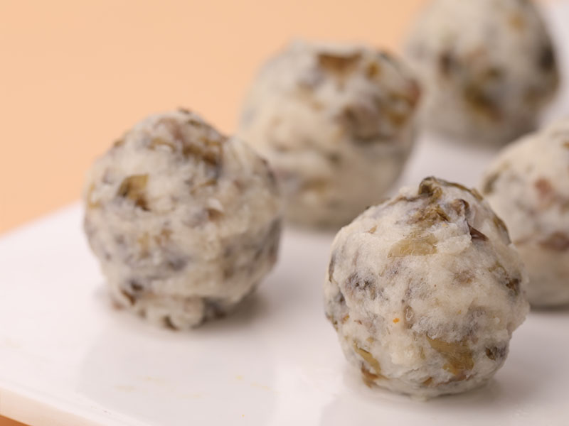 只選用冬季,生長周期相對較長的鲅魚,去刺,去皮,去脂。搭配優(yōu)質(zhì)紫菜,鮮而不腥。經(jīng)仿手工捶打工藝制作而成,口感Q彈,鮮嫩爽口
